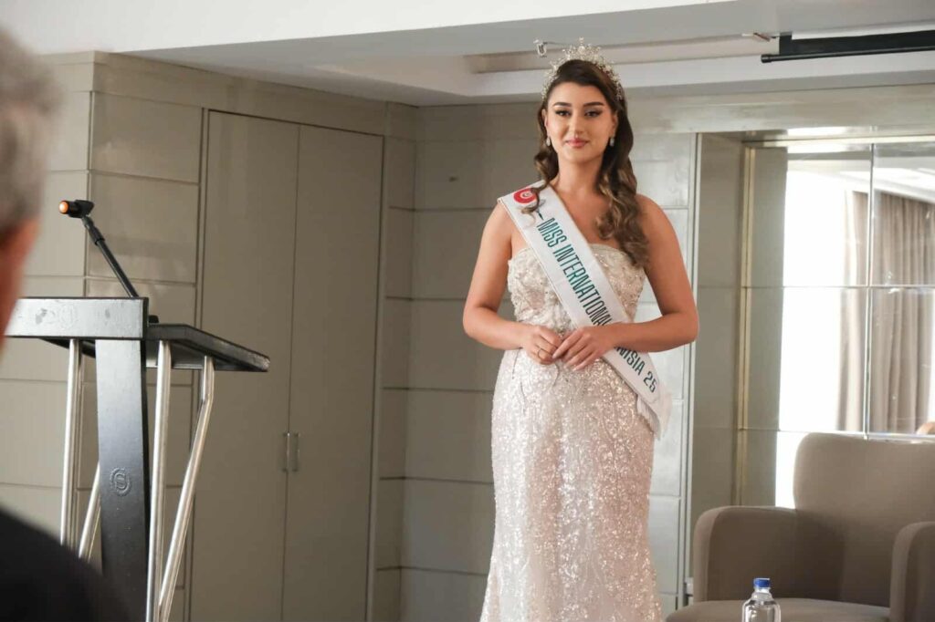 وتحدثت ملكة جمال تونس عن دورها في الترويج للسياحة التونسية، مشيرة الى ان مشاركتها تمثل فرصة لتعريف العالم بتاريخ وثقافة تونس الغنية، وعاداتها، ومطبخها التقليدي، بين ما فيه مثل “الحريسة”. واضافت ملكة جمال تونس الدولية ان الزي الوطني الذي سترتديه مصمم ليعكس هوية تونس، مع خريطة البلد وعلمها، ليكون جسرا ثقافيا بين تونس والعالم.