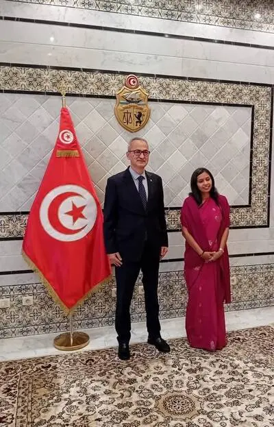 وفي الختام، قدَّم بن عياد التهاني للسفيرة الهندية بمناسبة تقديمها أوراق الاعتماد لرئيس الجمهورية قيس سعيد يوم 6 نوفمبر الماضي، مؤكدًا على أهمية هذه الخطوة في تعزيز الدفء الدبلوماسي بين البلدين.